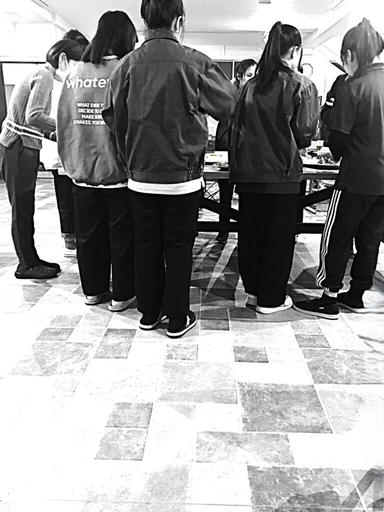 実習生が着ているスウェットの英字フォントが効いてます。^_^